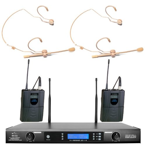 V2go Awisco 822b636 UHF Wireless Microphone System with Beige Color Mini Headset Overview